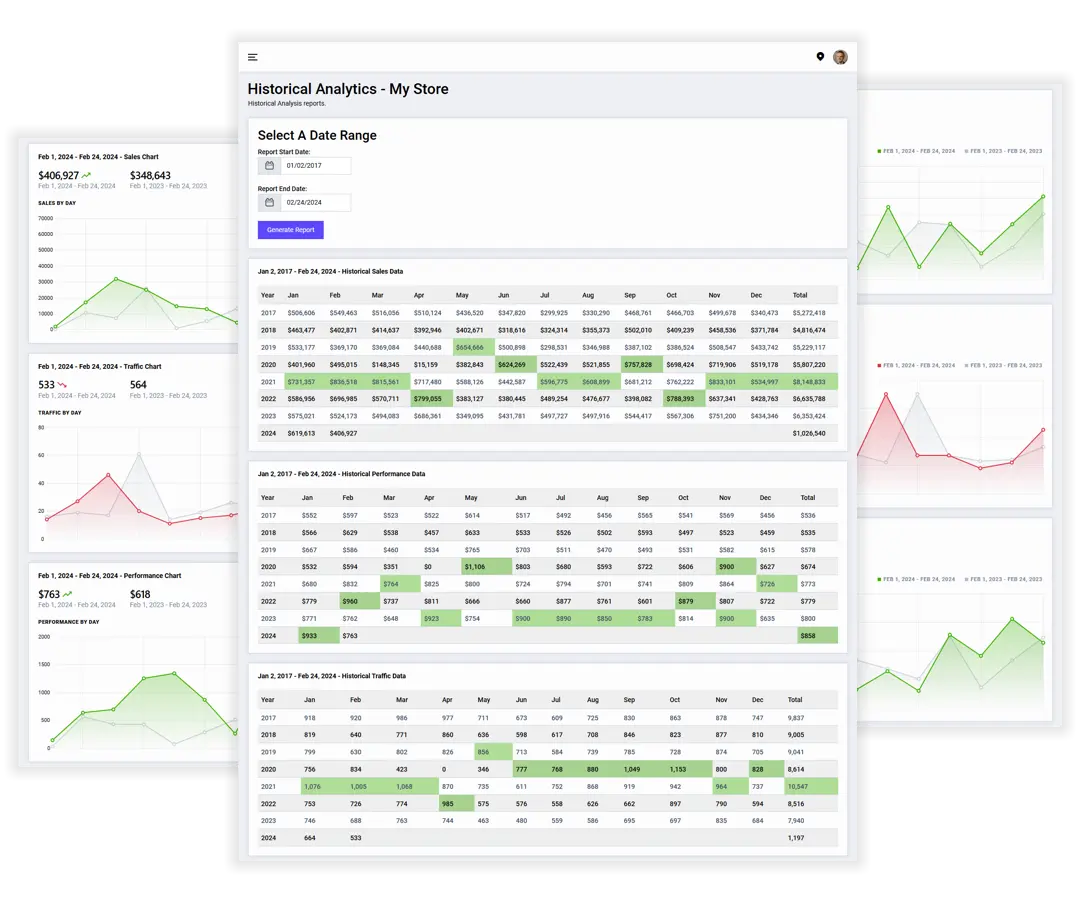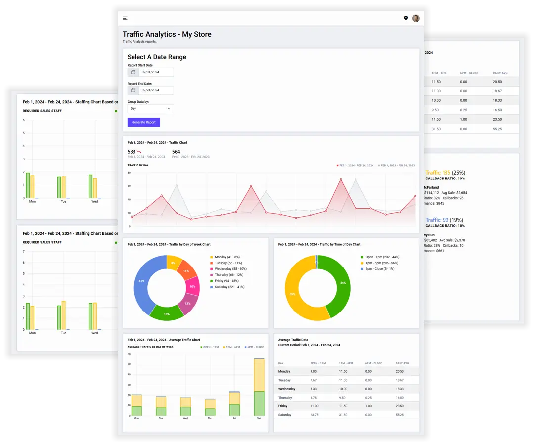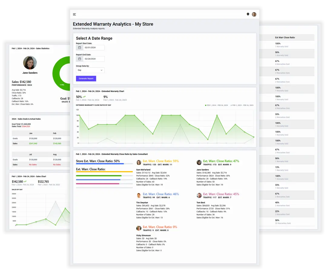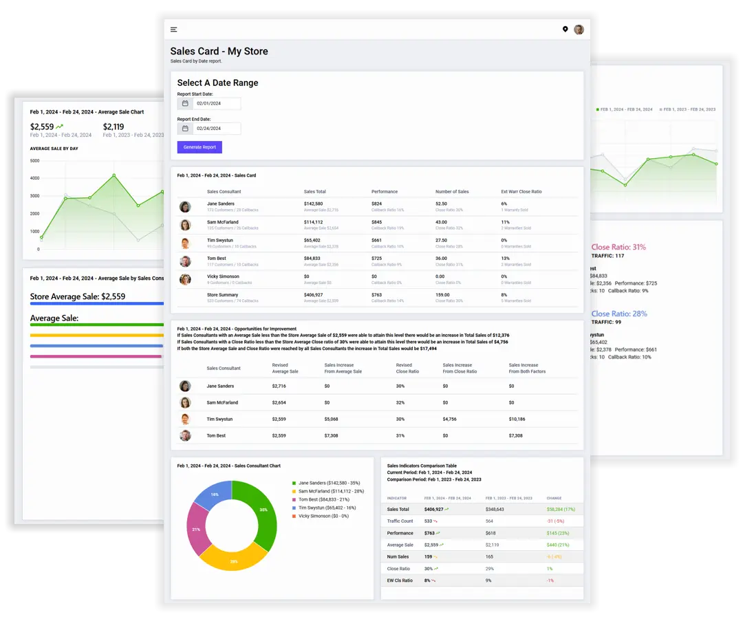 The Service Dashboard provides a graphical overview of the status of your service department, highlighting the timeliness of service provided, and the types of common or repeat service issues along with the status of each service request.